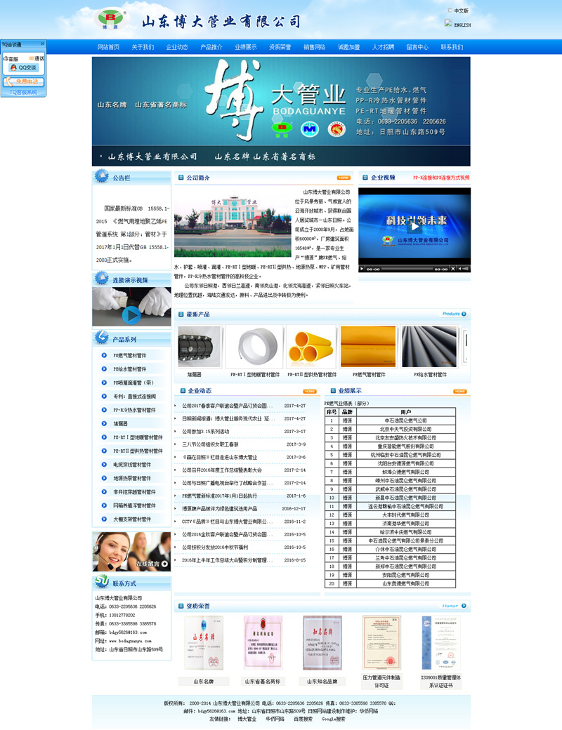 公司是中國城市燃氣協(xié)會、中國塑料加工工業(yè)協(xié)會塑料管道專業(yè)委員會會員單位。公司被評為全國誠信守法民營企業(yè)、全國重質(zhì)量守信譽先進單位、山東省高新技術(shù)企業(yè)、山東省重合同守信用企業(yè)、山東省消費者信得過單位、日照市優(yōu)秀民營科技企業(yè)、日照市AAA信用企業(yè)、日照市行業(yè)領(lǐng)軍品牌、日照市質(zhì)量管理先進企業(yè)。公司生產(chǎn)的“博源”牌系列產(chǎn)品榮獲“山東名牌”、“山東著名商標(biāo)”“知名品牌”稱號。